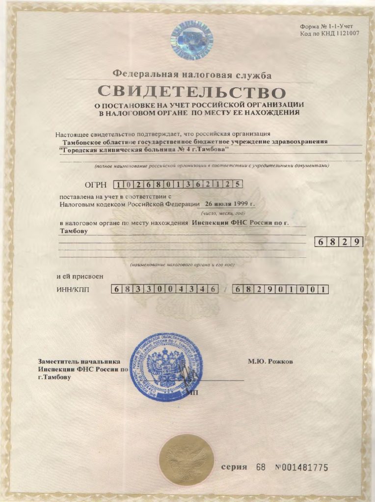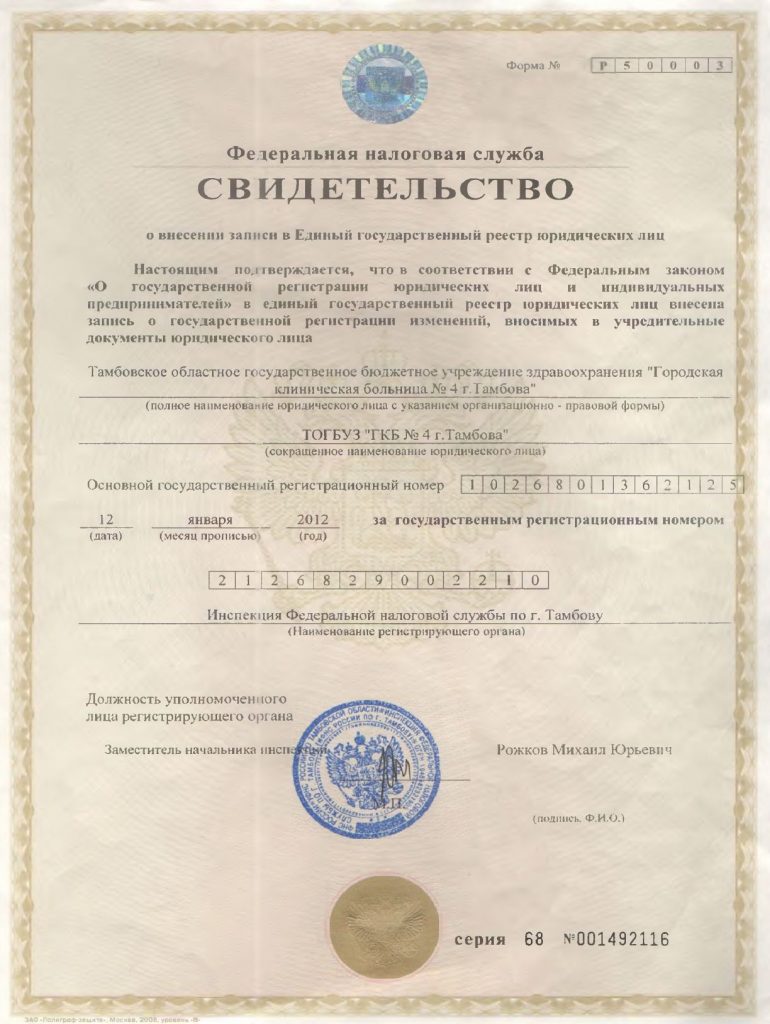 Учредительные документы ТОГБУЗ «ГКБ №4 г.Тамбова»