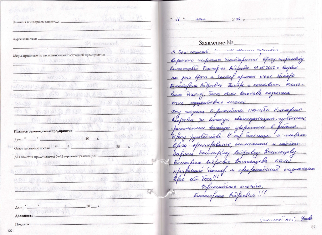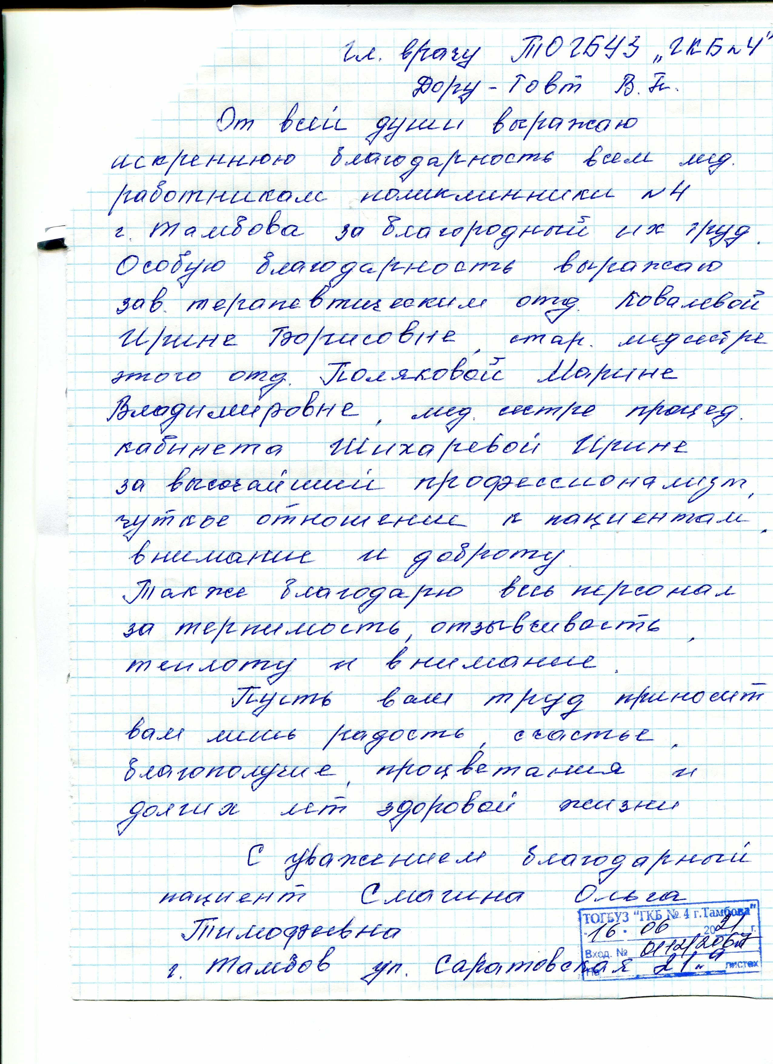 Благодарность от Родионовой Е.Е. Благодарность от Родионовой Е.Е. терапевтам Синицыну А.С. и Солнцеву С.А.