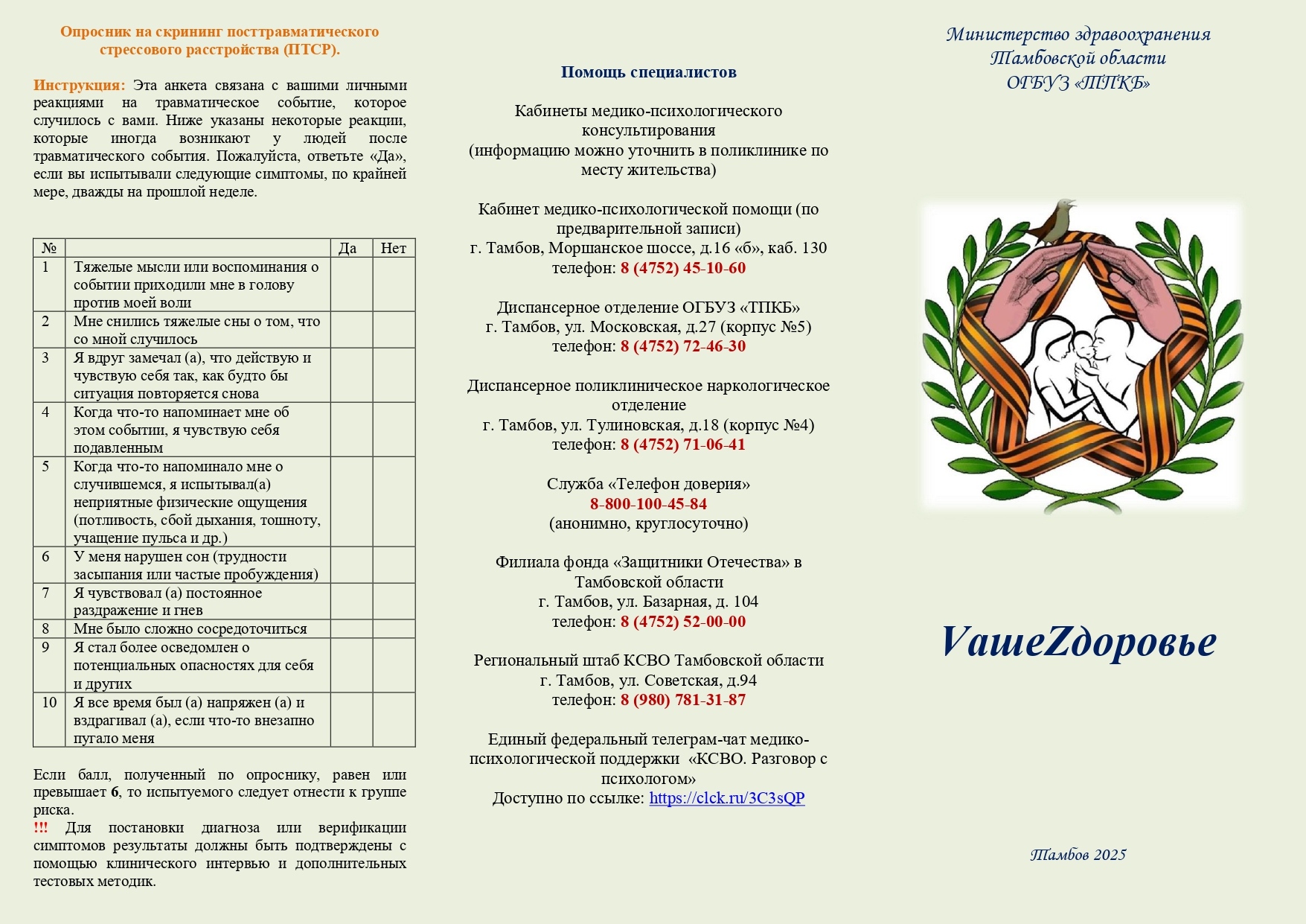 Если Вы заметили у себя следующие симптомы: повторное переживание стрессового травматического события в настоящем времени в виде наплывов ярких навязчивых воспоминаний, сопровождающихся страхом или ужасом; выраженное стремление избегать мыслей и воспоминаний о событии или уклоняться от деятельности людей и ситуаций, напоминающих это событие; состояние субъективного ощущения сохраняющейся угрозы, повышенной тревоги, настороженности, чувство совершения чего-то ужасного; нарушение сна, трудности с засыпанием из-за воспоминаний, кошмарные, пугающие сновидения, связанные с военными действиями; мысли об употреблении сигарет, алкоголя, наркотик, как мера избавления от стрессовой ситуации; раздражительность, апатия, немотивированная усталость и т.д., то вам стоит получить консультацию психолога или психотерапевта.