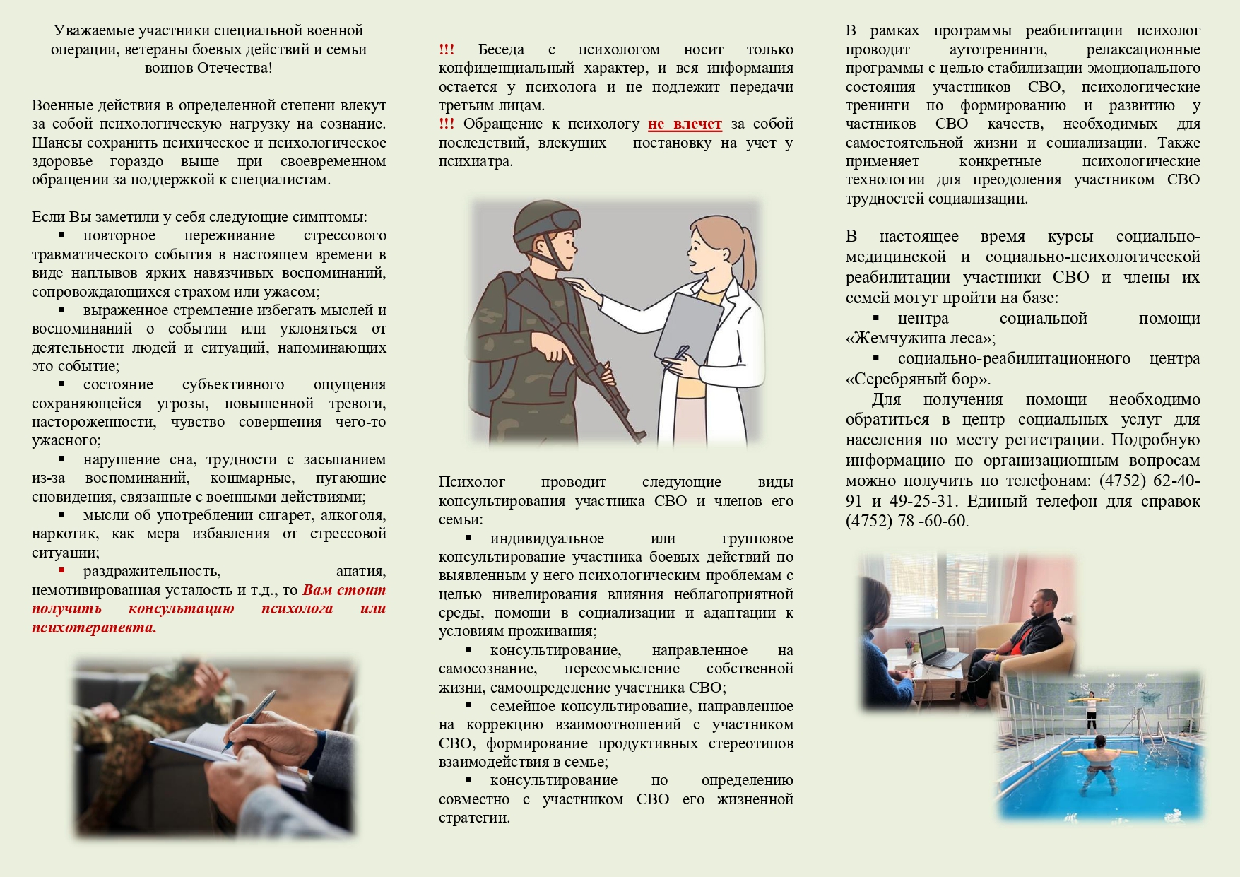 Военные действия в определенной степени влекут за собой психологическую нагрузку на сознание. Шансы сохранить психическое и психологическое здоровье гораздо выше при своевременном обращении за поддержкой к специалистам.