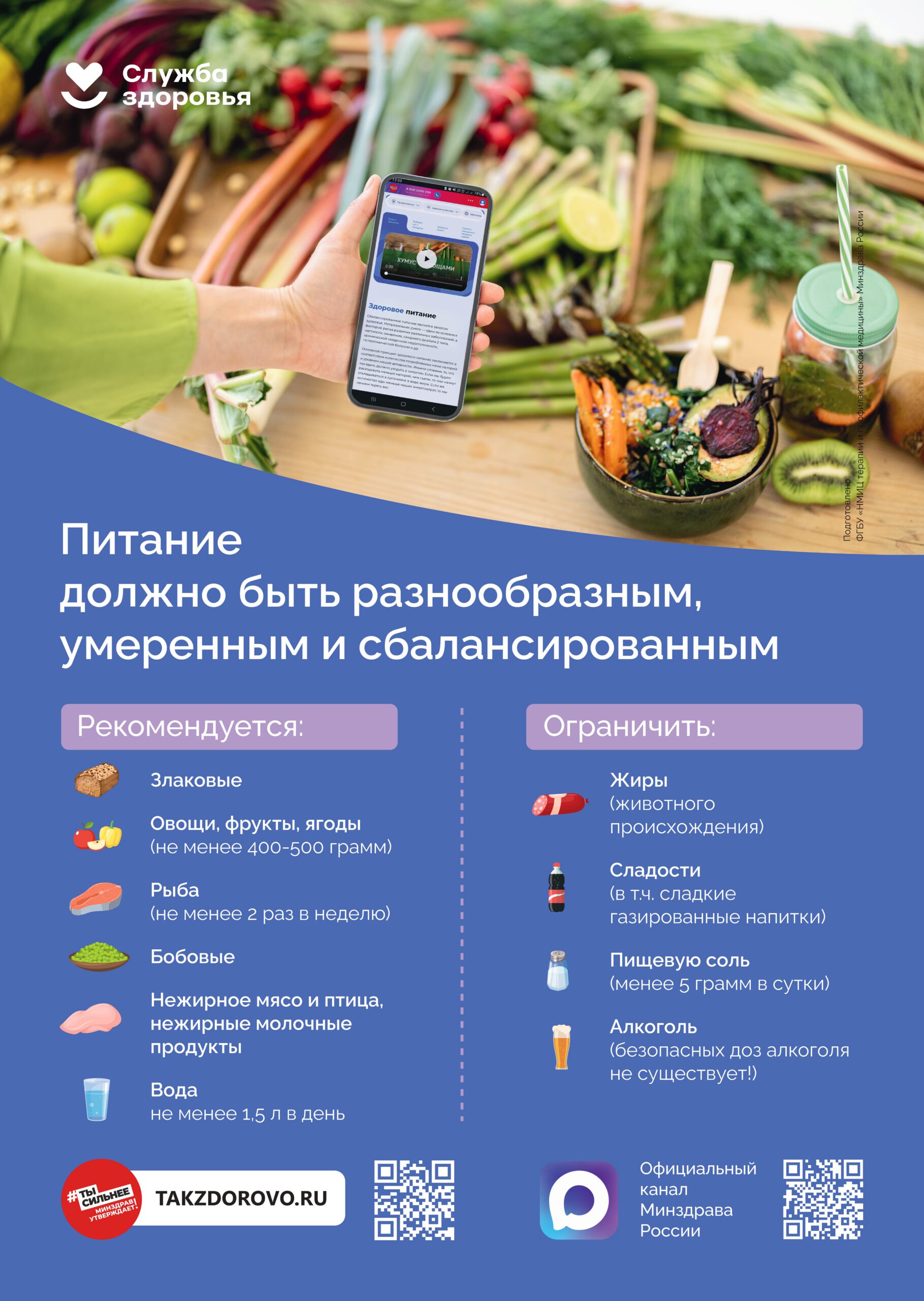 С 22 по 28 декабря отмечается неделя популяризации здорового питания. Заведующий отделением медицинской профилактики ТОГБУЗ «ГКБ №4 г.Тамбова» Роман Владимирович Балыкин рассказал о пяти основных шагах для здорового питания.